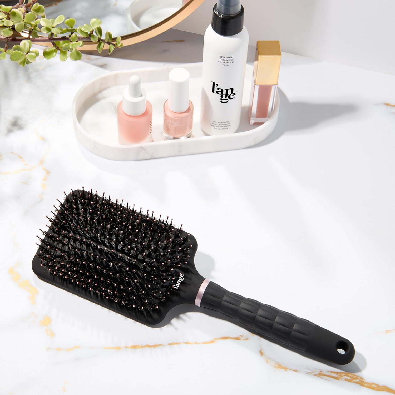 L’ANGE HAIR Detangling Paddle Brush | Nylon & Boar Bristles for Wet or Dry Hair | Built for Thick Hair | Reduces Snagging & Breakage | Tames Flyaways & Frizz for Softer, Shinier Strands (Black)(Black)